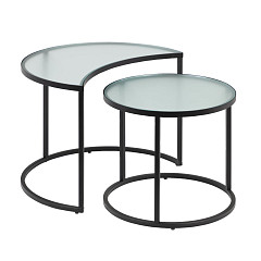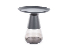Стол имеет квадратную или прямоугольную форму (зависит от выбранной модели). Столешница толщиной 0,8 см выполнена из закаленного прозрачного стекла. Она окантована металлическим каркасом, который покрыт черной матовой краской. <br /><br />